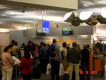 Stunde vor Abflug am Abflugschalter B 24 - B 28. In der Regel waren die