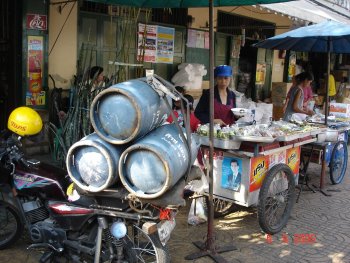 Kontrast krass: Gasflaschen auf einem Moped