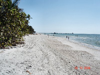 Im Hintergrund die Pier von Naples. Der weiße Strand. Das warme Meer. Halbschatten