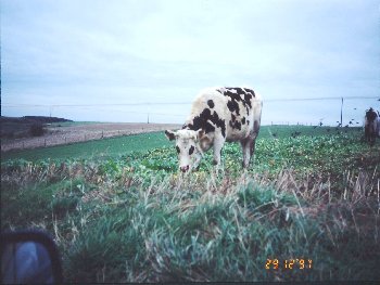 Normanische Kuh mit D & G-Brille? oberhalb von (mouseover) Etretat.