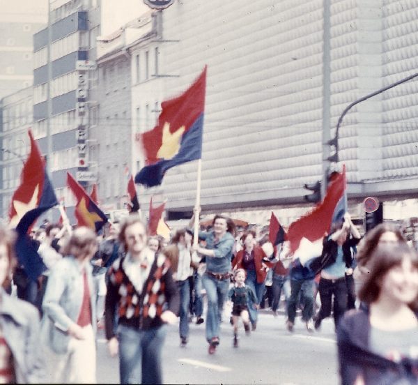 wo er 1972 (?) eine Vietkong-Fahne an den Gerechtigkeitsbrunnen auf dem