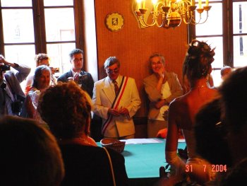Bürgermeister seine Schärpe in den Farben der Trikolore zurecht. Danach