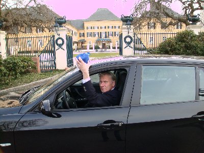 mit der linken Hand gekonnt auf das Dach setze und diese Raser damit zur