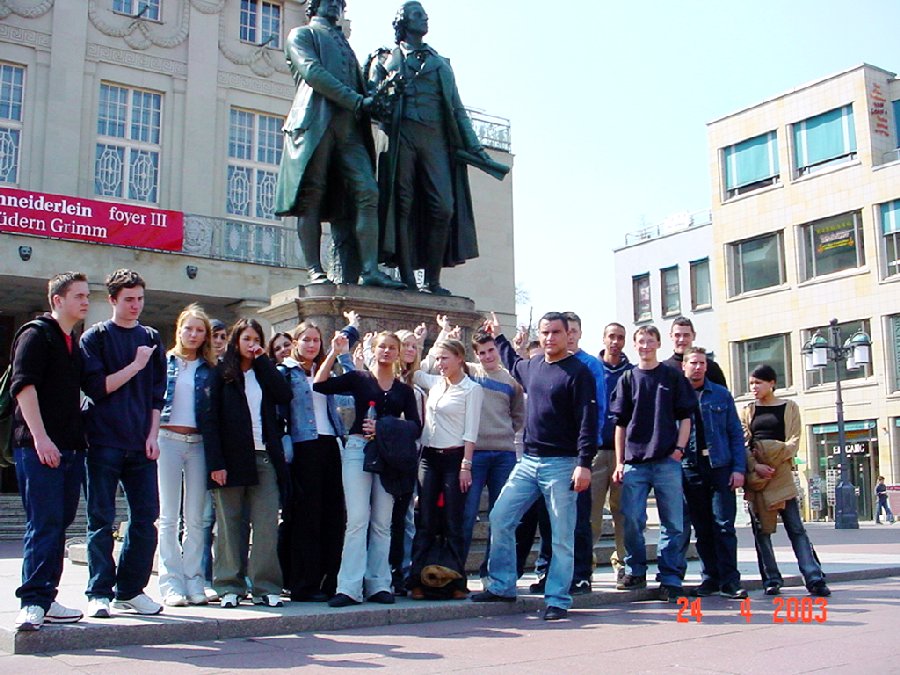und stellten uns vor das Goethe-Schiller-Denkmal auf dem Theaterplatz