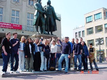 Wir, voller Bildungsdemut, vor dem Goethe-Schiller-Denkmal von Ernst