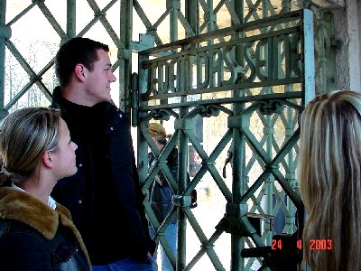 Inschrift am Eingangstor KZ Buchenwald: "Jedem das Seine" Ein
