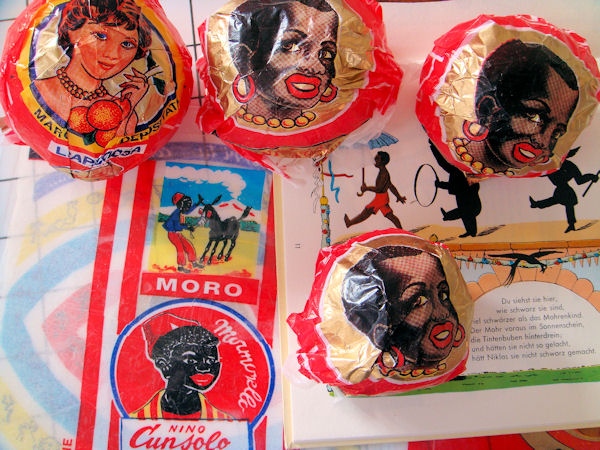In diesem Fall eine Mohrin mit roten, schwülstigen Lippen und riesigen Ohrringen.