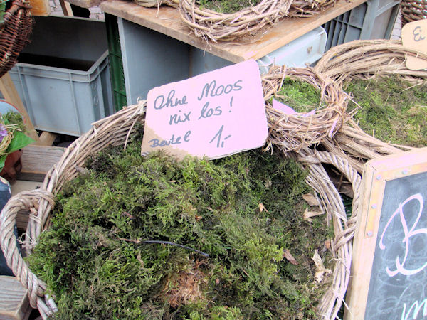 Gesehen auf dem Wiesbadener Wochenmarkt. "Ohne Moos nix los!" Wohl